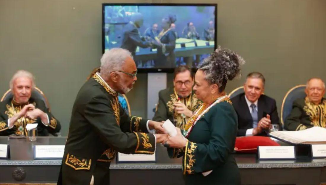 Ana Maria Gonçalves recebeu o diploma das mãos de Gilberto Gil. Foto: ABL/ Dani Paiva.