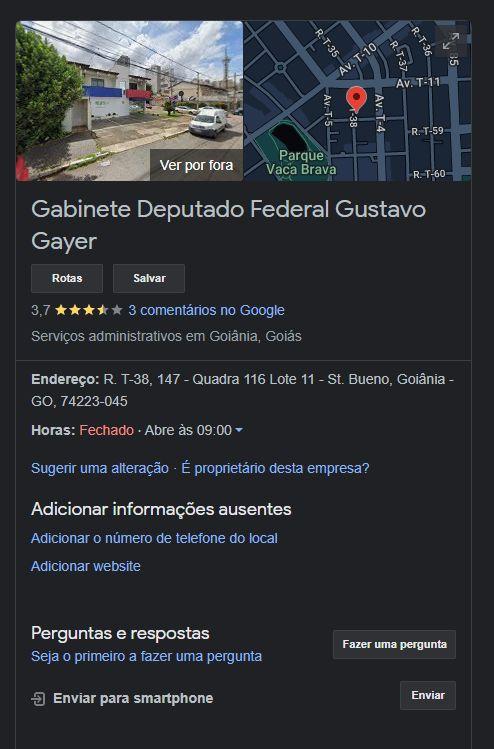 As imagens mostram onde fica o atual gabinete do deputado Gustavo Gayer (PL-GO). O escritório fica em Goiânia. Por alguns anos, no mesmo endereço, funcionou a empresa do parlamentar com o nome fantasia "Gustavo Gayer Language Institute".