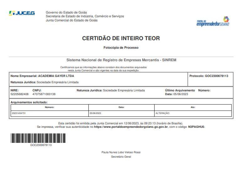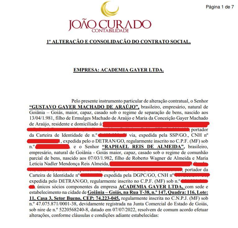 O deputado omitiu para o TSE a empresa "ACADEMIA GAYER LTDA". Ela foi aberta em 7 de julho de 2022 no mesmo local que seria alugado para ser seu comitê. E é onde hoje é o seu gabinete, como aparece nas imagens abaixo. Até o dia 5 de junho de 2023, quando foi solicitada alteração de endereço na Junta Comercial.