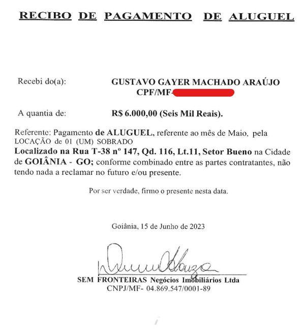 Acontece que o Gustavo Gayer não informou ao TSE, na prestação de contas, que o imóvel pago com recursos da campanha também era endereço de algumas de suas empresas. Ele declarou ao tribunal a empresa Gayer e Gayer idiomas LTDA, como consta na imagem abaixo.