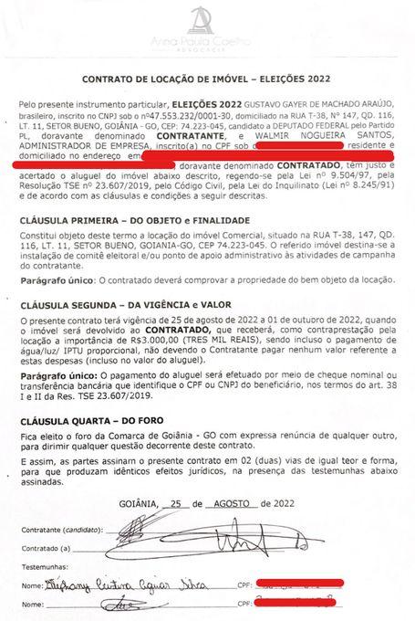 No dia 25 de agosto de 2022, na época candidato, Gayer alugou o endereço onde funcionava algumas de suas empresas para ser a sede do seu comitê de campanha. Essa informação consta no contrato apresentado ao TSE. Esse aluguel seria de R$ 3 mil, entre 25 de agosto até 1º de outubro do ano passado.