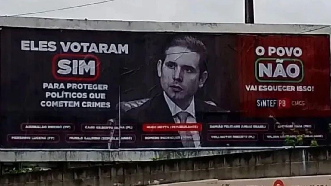 Hugo Nem Se Importta, aquele chorão que pensa que é presidente da Câmara, tentou tirar de circulação uma série de outdoors que simplesmente listavam os parlamentares paraibanos que votaram a favor da tal blindagem. O sindicato colocou a frase óbvia: “Eles votaram sim para proteger políticos que cometeram crimes”. E Motta?? Desabou emocionalmente. Chorou, esperneou, acionou advogado, notificou geral e ainda exigiu um pedido de desculpas em novos outdoors. Autoestima assim só com whey protein de ego.